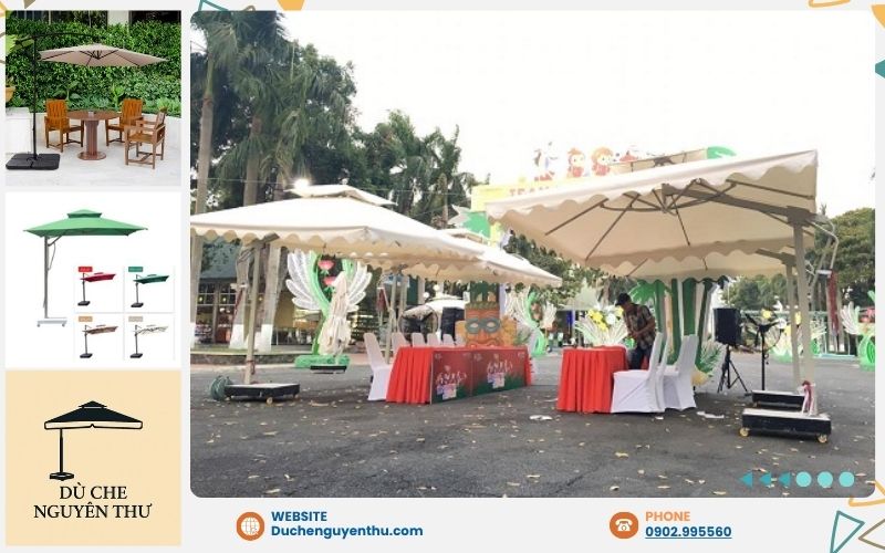 Dịch vụ cho thuê dù lệch tâm che nắng sự kiện ngoài trời là lựa chọn thông minh, tiết kiệm và linh hoạt cho các cá nhân, doanh nghiệp tổ chức sự kiện. Với mẫu mã đa dạng, dễ lắp đặt và giá cả hợp lý, bạn hoàn toàn có thể tạo ra một không gian ấn tượng và chuyên nghiệp cho bất kỳ buổi tiệc nào. Nếu bạn đang cần thuê dù lệch tâm chất lượng tại TP.HCM, đừng ngần ngại liên hệ Dù che Nguyên Thư để được tư vấn chi tiết và báo giá tốt nhất.