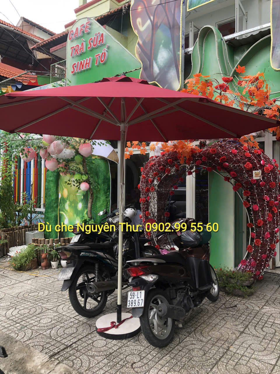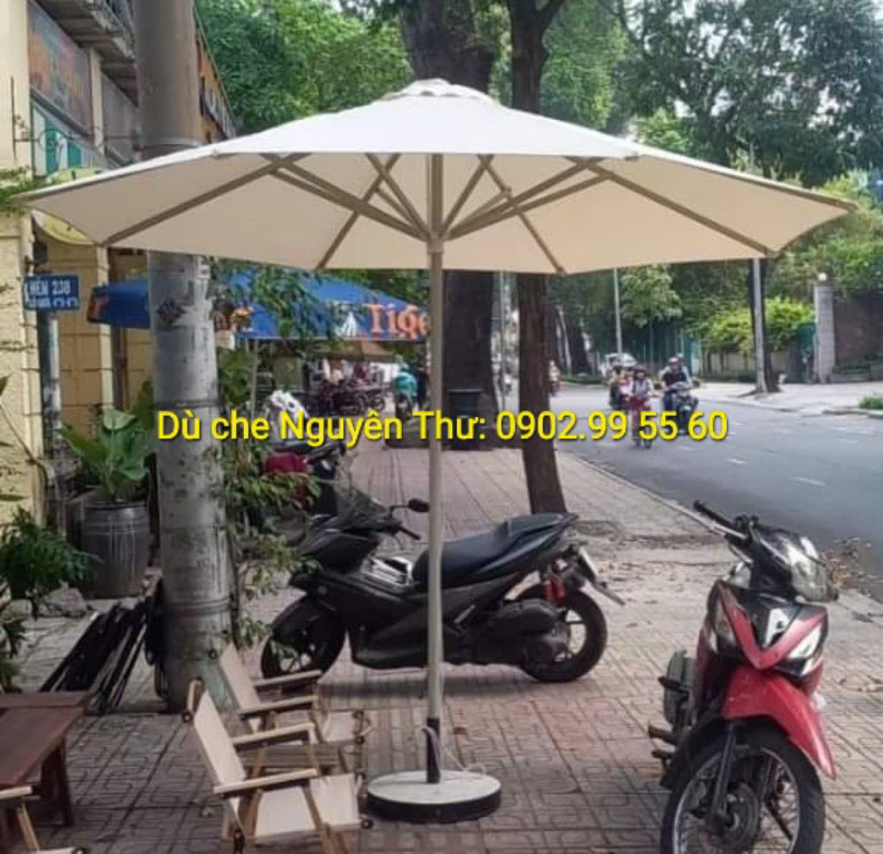 - Đế dù vuông: Đá mài bọc thép xung quanh, , đường kính 50cm x 50cm. trọng lượng 55kg