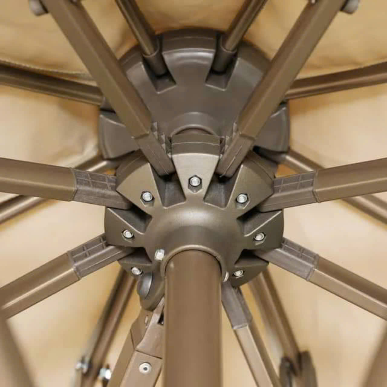 *Khung và nan ô làm từ chất liệu hợp kim nhôm cao cấp được phủ thêm một lớp sơn tĩnh điện giúp cho sản phẩm được bền hơn, chịu được mọi thời tiếtmưa nắng ngoài trời