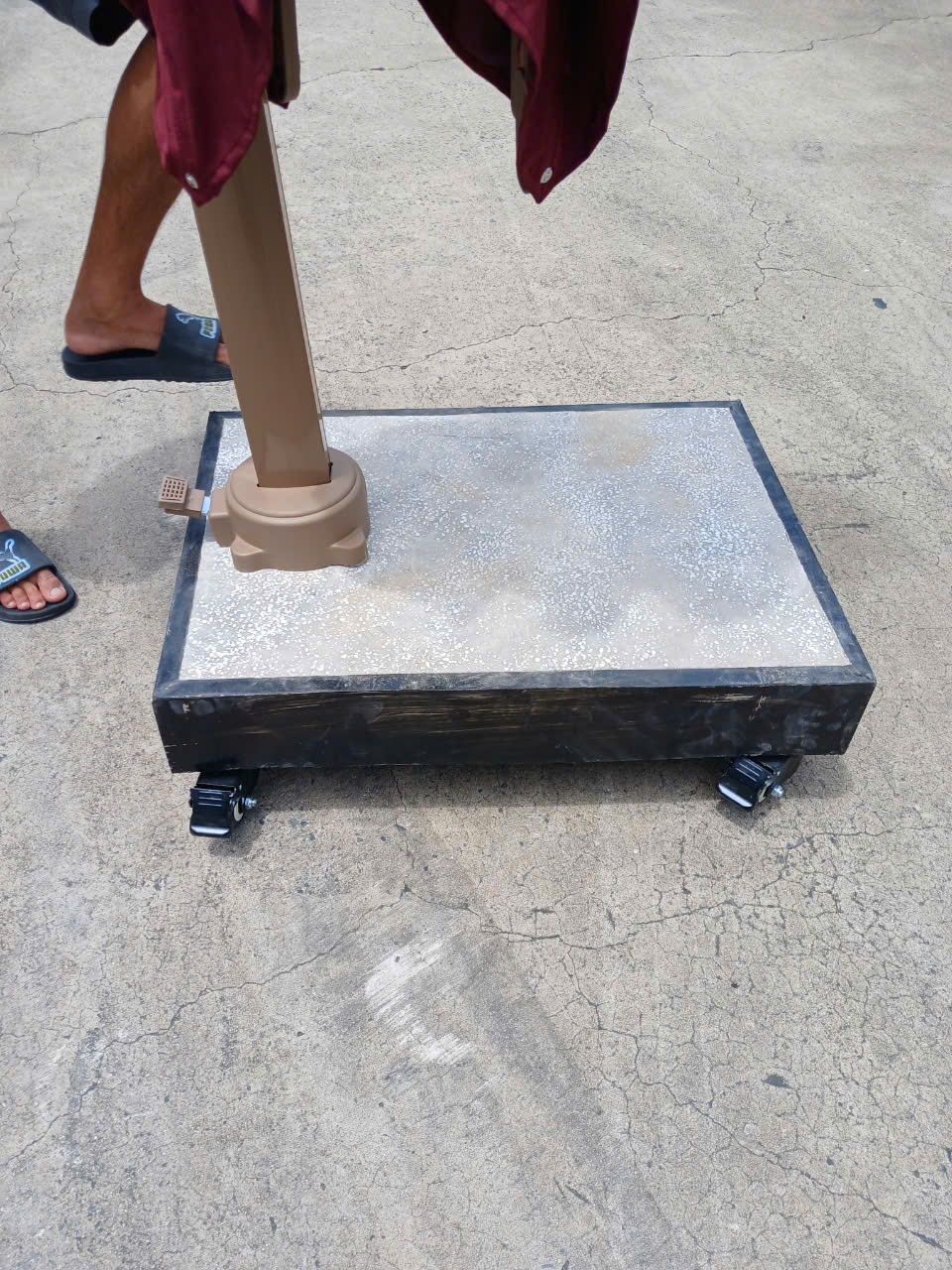 (2) Chân bê tông đổ sẵn trọng lượng 120kg. có bánh xe , mặt đá mài, bọc thép chống gỉ